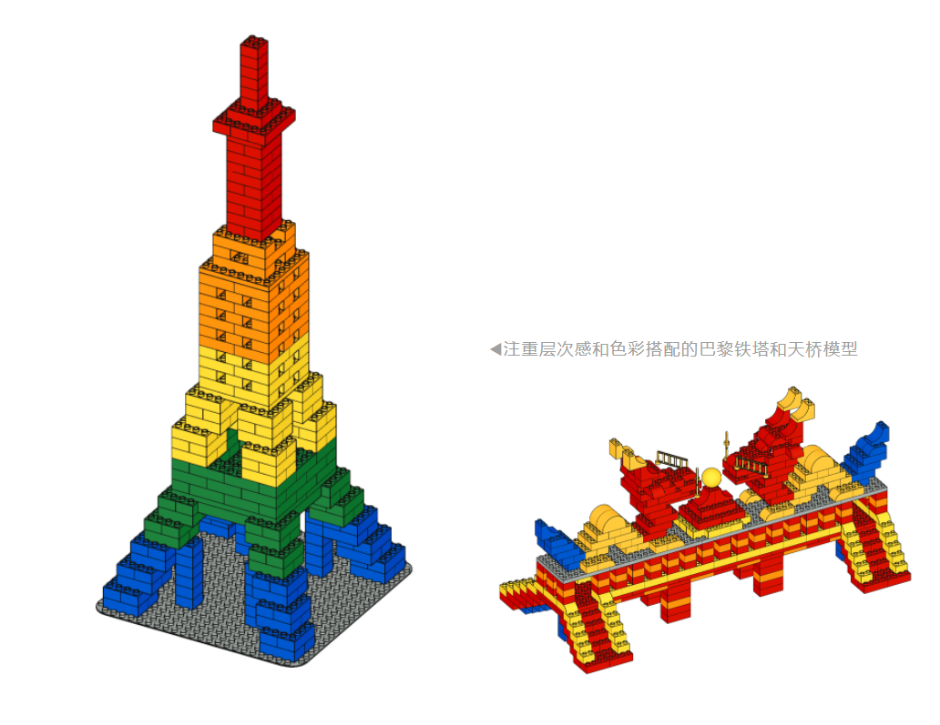 課堂里造型多樣、色彩豐富的模型,不僅鍛煉孩子利用STEAM跨學(xué)科解決問(wèn)題的能力,還有意識(shí)地引領(lǐng)孩子搭建極具藝術(shù)力的創(chuàng)作,學(xué)習(xí)色彩搭配、對(duì)稱性和黃金比例的應(yīng)用……不知不覺(jué)間,藝術(shù)修養(yǎng)和思維能力都獲得了同步提升。