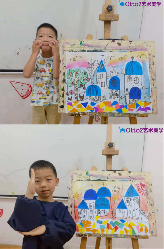 哥哥剛來時(shí)有些靦腆,上課分享畫作會(huì)害羞,但半年后,他愛上了畫畫,也不懼大膽分享,會(huì)爭(zhēng)著想第一個(gè)抽簽介紹自己的作品。“星星老師,你快點(diǎn)拿紙給我,我要畫畫啦!”,每次聽到哥哥純真的催促,老師覺得十分欣慰與感動(dòng)。弟弟則是一位特別熱愛畫畫的小朋友,他的小腦袋里盤旋著無數(shù)世界建筑,每節(jié)課會(huì)給老師帶來一幅自己的創(chuàng)作。
